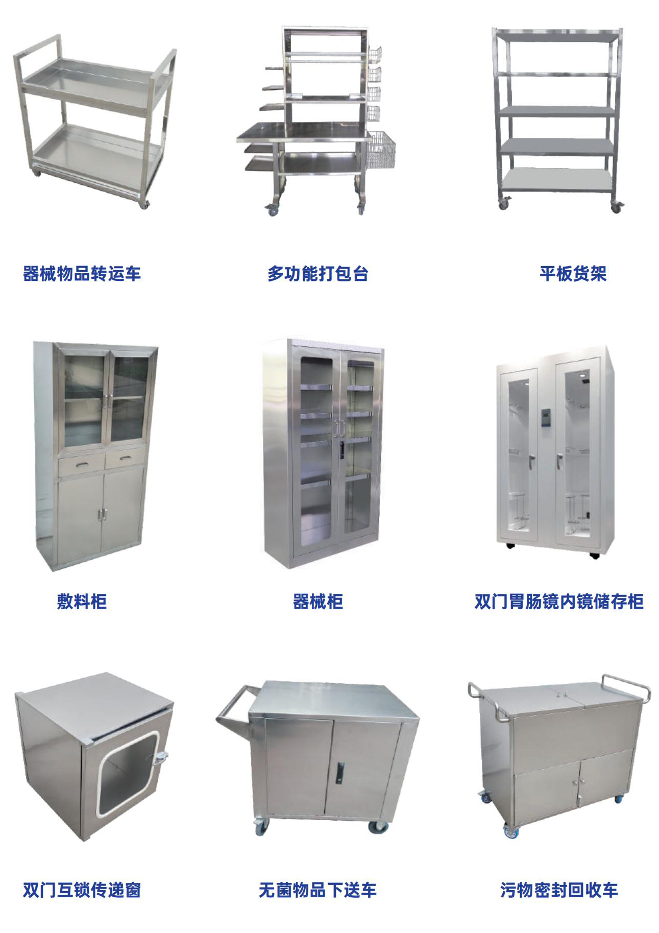广泛用于医院内镜室、手术室、支气管镜室、膀胱镜室、耳鼻喉科、五官科等科室,用于无菌存放各式软式内窥镜、硬式内窥镜及其它手术器械。