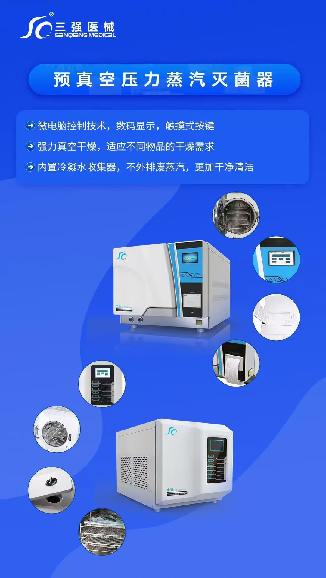 河南三强预真空高温脉动灭菌器(SQ-Z23、SQ-M100、SQ-M200)以其高效灭菌、智能控制、安全可靠的技术优势,成为医疗机构处理耐湿热器械的首选设备。规范的安装操作、齐全的监测耗材、严格的质量控制,共同保障了设备的安全高效运行。选择三强医械预真空高温脉动灭菌器,就是选择专业、可靠的医疗器械灭菌解决方案。