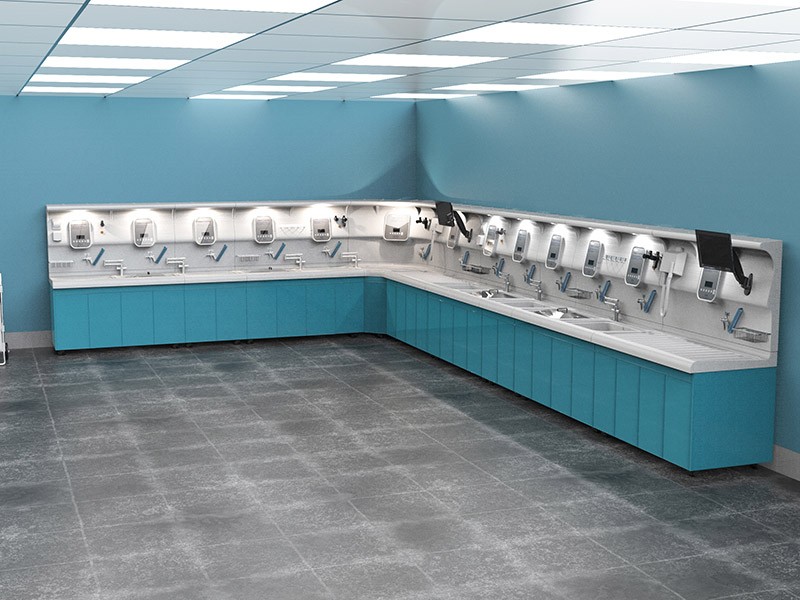 清洗槽和背板采用优质高分子材料(PMMA)一体成型,表面光滑无缝,高度耐酸碱腐蚀,细菌附着率低,易于清洁维护。柜体采用不锈钢支架,悬空设计避免卫生死角,符合院感管理要求。